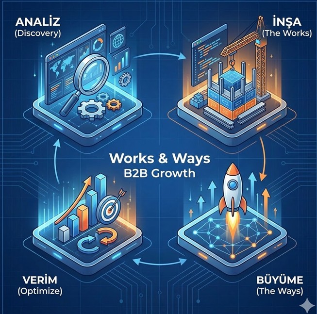 Herhangi bir sanayi ürünü, çok iyi bir hizmet yada SaaS nasıl ki AR-GE (Works) ve doğru pazarlama (Ways) olmadan satılamazsa, dijital dünyada da durum aynıdır. Bizim için web sitesi bir amaç değil, satış ve ihracat için bir araçtır.